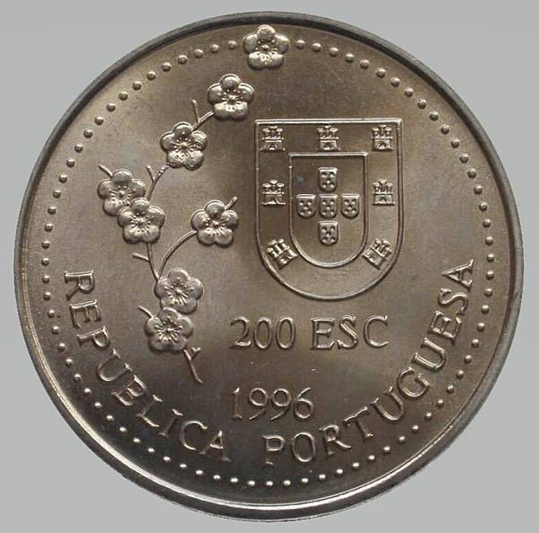 硬幣 > 200 埃斯庫多,1996 年 - 葡萄牙(1582 年葡萄牙發現台灣) - 正面 硬幣 > 200 埃斯庫多,1996 年 - 葡萄牙(1582 年葡萄牙發現台灣) - 反面