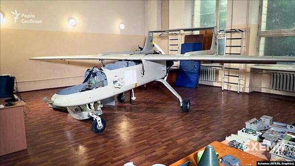 遭烏軍擄獲的伊朗製「遷徙者-6」(Mohajer-6)無人機。(圖擷取自烏克蘭國安局推特)