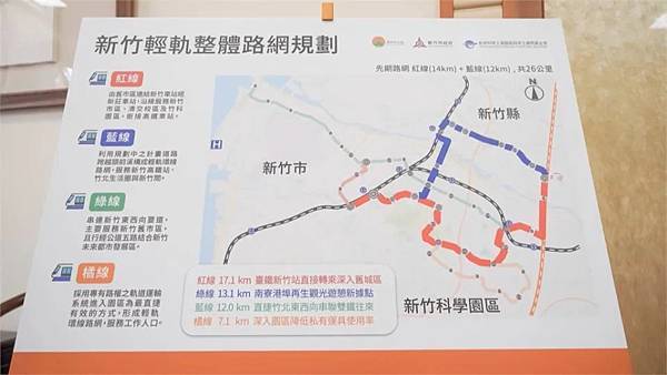 交旅處指出,大新竹輕軌第1期優先推動案,竹縣藍線可行性評估預計今年11月完成後,送交竹市政府統整一份完整的藍紅線可行性評估報告,預定明年4月送交通部審查。另與科3計畫密切相關的「竹東-二重埔-竹科」(棕線),因屬長期路網,具體路線規劃將俟棕線進行可行性研究時才能確定。