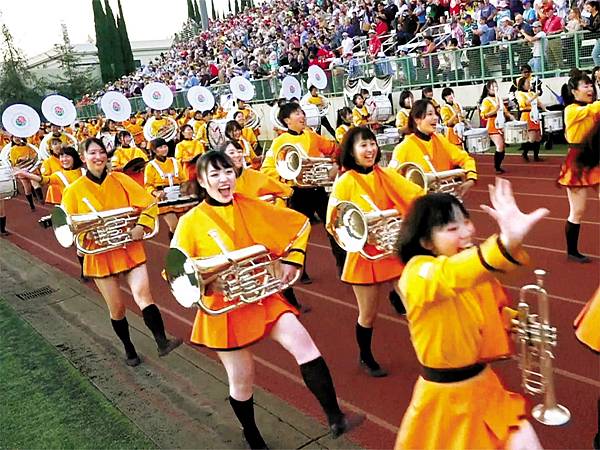 京都橘高中管樂社,又稱橘色惡魔。不論表演內容多麼困難、多麼激烈,京都橘都不會忘記展現發自內心的笑容。學生們自己也非常引以為榮,將此視為樂隊的傳統,不斷向下傳承。 圖片來源:遠流出版提供、©Green Band