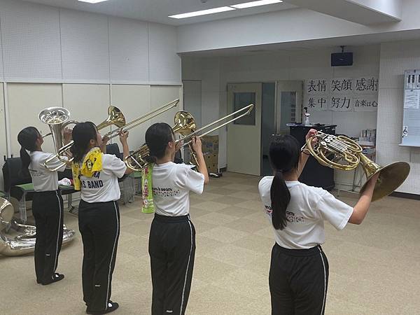日本台灣交流協會曝光橘高校學生樂隊練習教室,牆面上貼著「表情」、「笑顏」、「感謝」、「集中」、「努力」等大大標語。 圖:翻攝自日本台灣交流協會臉書