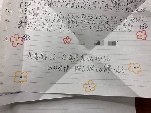 協會也收到來自橘高校學生的手寫信,有人寫到因為疫情,能夠正式上台表演機會只有兩、三次而已,能夠在高三的時候被邀請到台灣參加如此盛大的活動演出,真的感到非常榮幸!末了,這位同學還寫上「我想再來!!台灣是最好的!!日台有情,讚!讚!!讚!!!」,網友看了直呼好可愛,表示「果然女生都這樣(台灣女生也是)」。