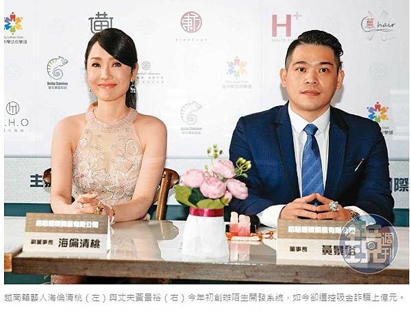 越南籍藝人海倫清桃(左)與丈夫黃景裕(右)今年初創辦陌生開發系統,如今卻遭控吸金詐騙上億元。