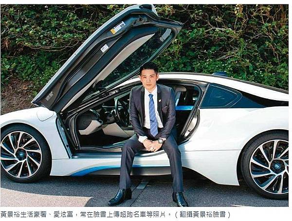 黃景裕生活豪奢、愛炫富,常在臉書上傳超跑名車等照片。(翻攝黃景裕臉書)
