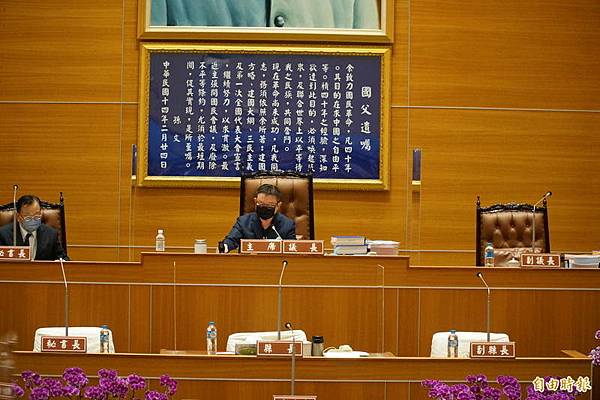 新竹縣議長張鎮榮今天下午敲下議事槌確認審議通過111年度總預算。(記者廖雪茹攝)