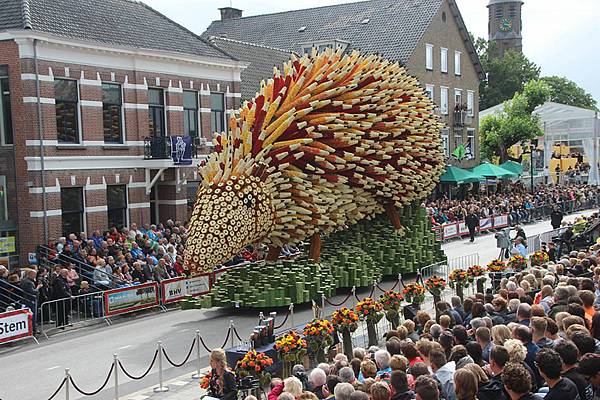 說到荷蘭花季就會想到荷蘭的國花鬱金香,而在津德爾特這地方還有更具視覺衝擊力的活動──津德爾特花車節(Bloemencorso flower festival)。