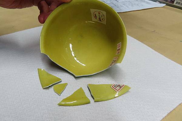 〔記者凃盈如/台北報導〕故宮院長吳密察今針對國寶瓷器破損詳情報告,三件文物受損照片,甫公諸於世。從照片看來,以「清 康熙款暗龍白裏小黃瓷碗」破損最小,「 康熙款 案龍白裏小黃瓷碗」為其次;而牽涉人為疏失的「清 乾隆青花花卉盤」則破損最嚴重。