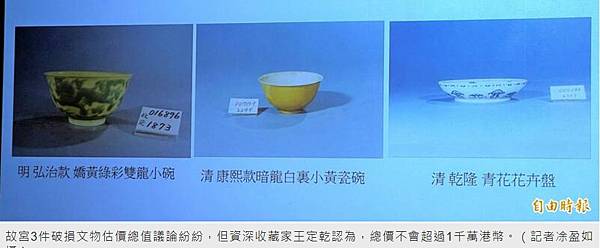 故宮3件破損文物估價總值議論紛紛,但資深收藏家王定乾認為,總價不會超過1千萬港幣。(記者凃盈如攝)