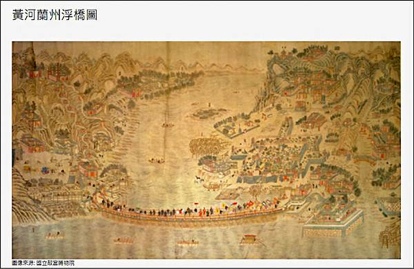 「黃河蘭州浮橋圖」為清朝同治年間的畫作。(取自國家文化資產網)