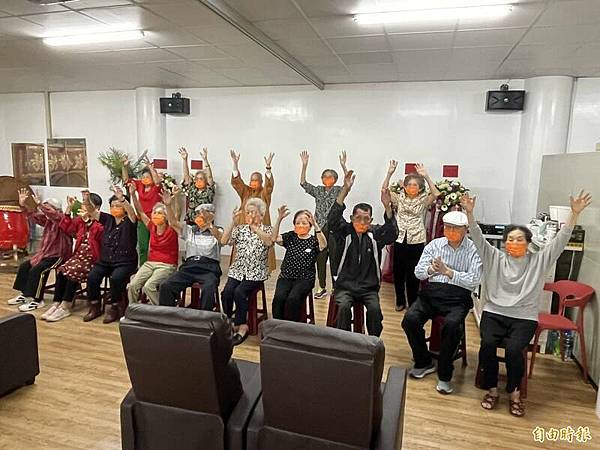 樂耆慈惠日照中心的長輩們開心參與身體健康活動。(記者王俊忠攝)