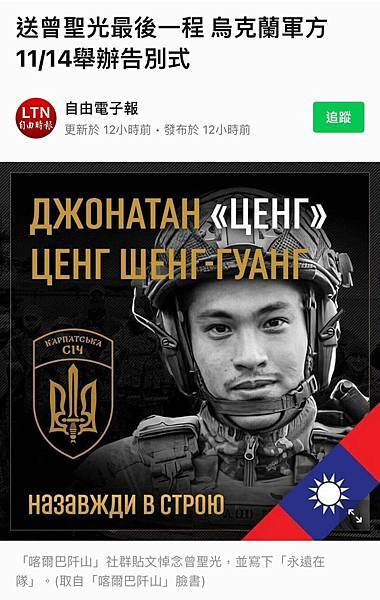 台灣25歲志願兵戰死烏克蘭 家屬證實接獲噩耗 - 政治 - 自由時報電子報 https://bit.ly/3WwXpPx