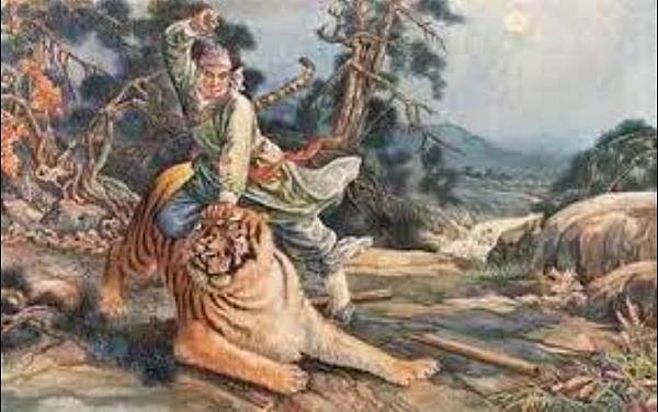 2.撲打老虎從來不是樁簡單事,具打虎能力者,歷來概為男子,如水滸傳裡孔武有力的武松(景陽崗徒手打死猛虎,為英雄好漢典範),又如西晉除三害的周處(曾射虎斬蛟),彼等俱為男子。至於二十四孝裡,扼虎救父的十四歲孝女楊香,孱弱女子卻能掐住老虎脖子,拯救父親虎口脫險,乃激勵人心,提倡孝道的民間流傳故事爾。