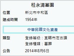 墓園中參謀總長桂永清上將,其父母以及妻子先後安葬在中和中正路211巷底的