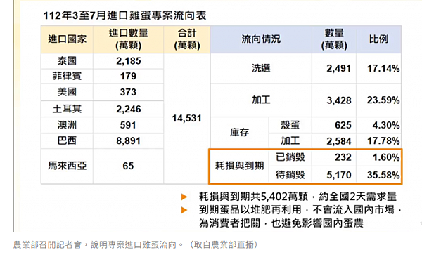 20230916-農業部公布專案進口雞蛋流向。 (取自農業部直播)