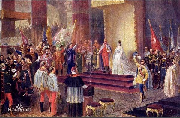 奧地利帝國是個多民族的國家。十九世紀時民族主義興起,帝國內高呼獨立的民族聲浪此起彼落。為避免帝國分裂,奧地利帝國皇帝法蘭茲.約瑟夫一世(Francis Joseph I)與匈牙利貴族達成協議成立奧匈帝國(Austria-Hungary)這一「二元帝國」7,從此匈牙利地位得以上升至與奧地利平起平坐。法蘭茲.約瑟夫一世也就成了奧匈帝國皇帝。