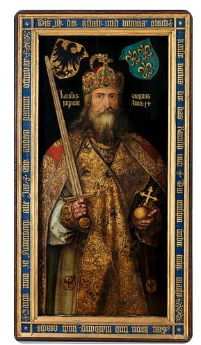 在他之前,歐洲(包括羅馬教廷)仍然尊崇拜占庭帝國皇帝為唯一合法使用「皇帝」頭銜的人。不過,卡爾大帝時的歐洲,拜占庭帝國因緣際會下出現了第一位女皇帝伊琳娜(Irene of Athens)。女皇帝的出現史無前例,衝擊了既有傳統,也同時刺激到羅馬教皇利奧三世(Pope Leo III)。他認為女性絕不會是合法的羅馬帝國皇帝。於是,他單方面宣佈羅馬帝國的帝位懸空。卡爾大帝政治觸覺十分敏銳,他看準了這是個獲得歐洲廣大土地統治合法性的機會,率兵征服意大利的倫巴底王國(Kingdom of the Lombards),解除了倫巴底人對羅馬教廷的威脅。作為回報,利奧三世於八○○年的聖誕節為卡爾大帝加冕為「羅馬人的皇帝」(Emperor of the Romans )。就這樣,卡爾大帝從此有了「皇帝」的稱號。