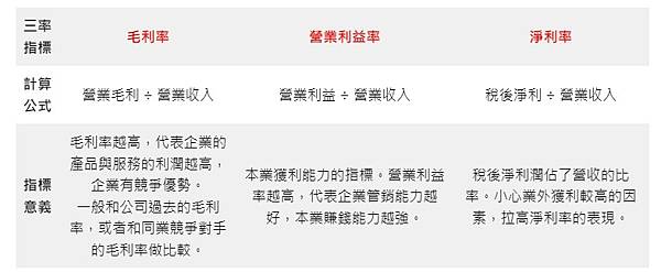 毛利率、營業利益率、淨利率指標所代表的涵義