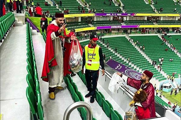 值得一提的是,日前摩洛哥的球迷也開始在看台上撿垃圾,獲得外媒《433》、日媒《SOCCER DIGEST》報導,內文指出,摩洛哥球迷是從小組賽交手比利時後,開始幫忙清理環境,都會拿著大型塑膠袋收拾垃圾。