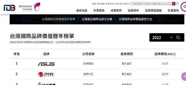 台灣前25大國際品牌出爐 華碩蟬聯冠軍、元太首入榜