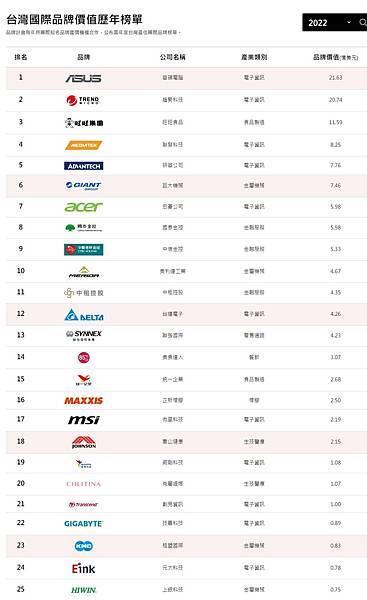 台灣前25大國際品牌出爐 華碩蟬聯冠軍、元太首入榜 | Anue鉅亨 - 台股新聞 https://bit.ly/3VpXQKg