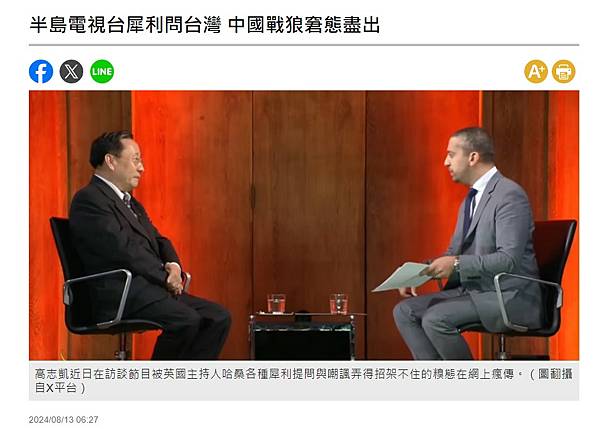 半島電視台犀利問台灣 中國戰狼窘態盡出 - 國際 - 自由時報電子報