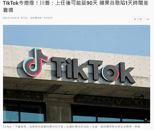 TikTok今熄燈!川普:上任後可能延90天 蘋果谷歌陷1天時間差窘境 | 川普重返白宮 | 全球 | 聯合新聞網