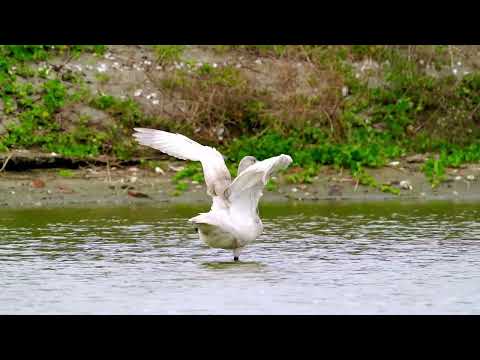 每年冬天從十一月開始,天鵝會陸陸續續飛到此越冬。最多是來年一月,數量可達上萬,成群結隊的天鵝讓湖面潔白一片。三月份天鵝則開始北返。