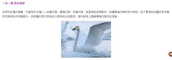 選定終生配偶的天鵝感情終生專一,在新疆養育幼鳥後,帶著家族成員跨越三千公里來到這兒度冬。亞成鳥(有著灰色羽毛,相較於成鳥故常被稱為醜小鴨)要花費約四年時間方能成為有繁殖能力的成鳥,爾後跟隨家族成長繁衍。