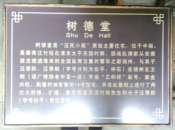 樹德堂:樹,豎立、建立。樹德,出於《書·泰誓下》:“樹德務滋,除惡務本。”意指與人做好事多多益善,或為助人為樂的美好德行一定要努力培養踐行才能建立起來,希望族人要堅持多做好事,樹立良好的道德形象,為立身之本。石祿生說匾:樹德堂_騰訊新聞 https://bit.ly/3FipDak