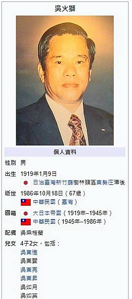 吳火獅,新竹人,生於一九一九年(日治大正八年)元月九日。這一年的三月,對台灣歷史沿革深具象徵意義的總督府(現在的總統府)新廈落成啟用。