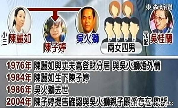 本刊調查,2005年1月吳火獅已過世19年,突然被爆婚外產女,陳子婷母親陳麗如當時提告確認親子關係存在之訴。陳麗如自稱曾與大她30歲的吳火獅交往,並於1984年為他生女,唯雙方各有配偶,訴訟過程中,法院曾請吳火獅的女兒吳如月及吳如英赴調查局,與陳子婷進行DNA比對,但遭到拒絕,陳麗如還一度要求法院開棺驗吳火獅遺骨DNA,引發社會熱議。