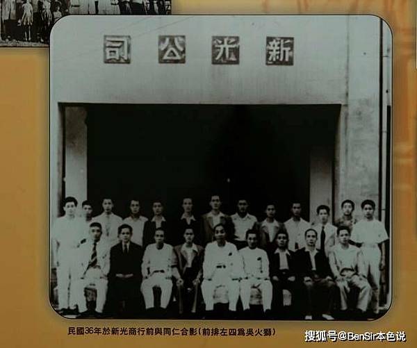 吳火獅二十一歲時曾任日本人小川光定經營的小川商行總經理,一九四五年二戰終戰後,在現在台北市南京西路的新光大樓發跡,創設第一個事業,取名「新光商行」,主要從事布疋、茶、糖、麵粉買賣。命名「新光」,吳火獅是取故居「新竹」和「小川光定」中的各一字,以示飲水思源、惜情念舊。這種情懷化為事業經營,他時時強調「企業家庭」的理念,對員工,誠如余英時教授所言「待之皆若家人子弟」。
