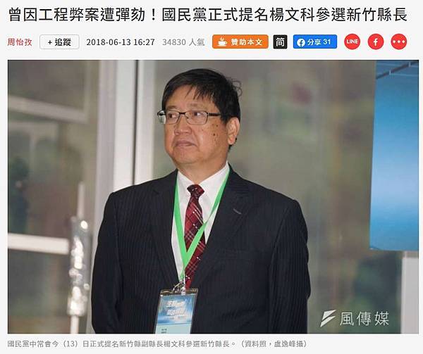 曾因工程弊案遭彈劾!國民黨正式提名楊文科參選新竹縣長-風傳媒 https://bit.ly/3P96r1Z