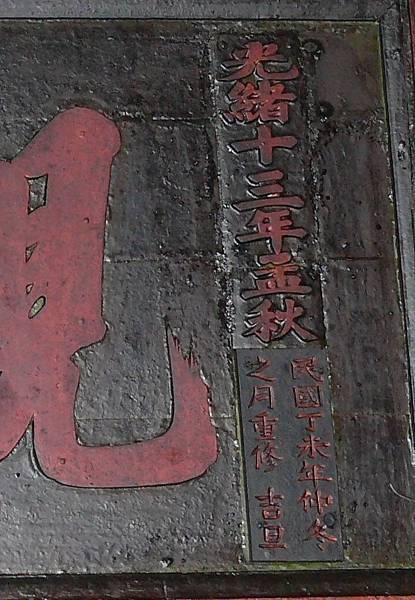 上款:光緒十三年孟秋 民國丁未年仲冬之月重修吉旦