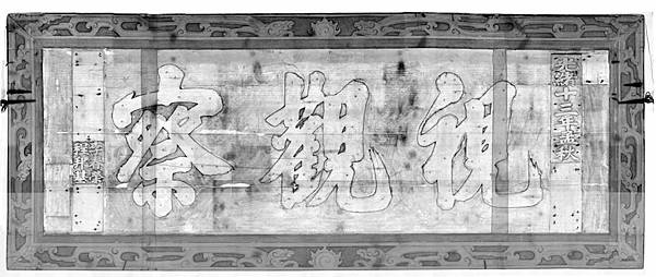 文澳城隍廟管理委員會對於廟方文物亦十分用心,於109年提出「視觀察」匾清潔維護計畫,委託國立科學工藝博物館執行。這次的大型健康檢查中,特別在清潔前為「視觀察」匾進行一次全幅的X光拍攝,透過X光照片可發現,「視觀察」下還隱藏著其他字體(圖4),可惜的是這些文字因遭強力清除而無法判斷,只能研判「視觀察」匾為舊匾新用。