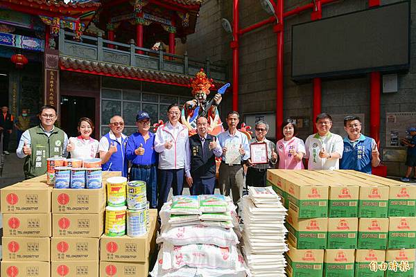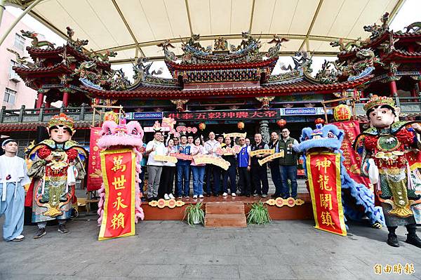 龍潭龍元宮建廟200年系列活動,由市長張善政(中)等人在廟前進行活動啟動式。(記者李容萍攝)