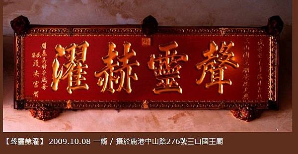 台南市後壁區新嘉里白沙屯福安宮「赫濯聲靈」古匾