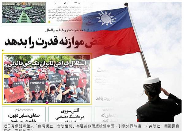 近日有伊朗媒體以「台灣獨立,合法權利」為題當作頭版嗆聲中國,引發外界熱議。(美聯社、圖翻攝自推特;本報合成)