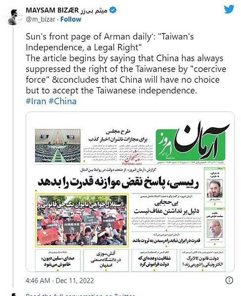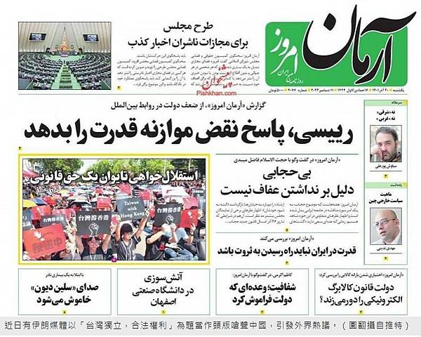嗆爆中國!伊朗被習近平惹惱 媒體頭版刊「台灣獨立」 - 國際 - 自由時報電子報 https://bit.ly/3uKAWBV