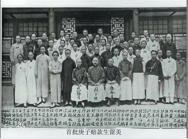 1909 年,中國首度利用退還的庚子賠款向美國派出了幾十名留學生。1911年(辛亥年),用於培養留美預備生的「清華學堂」在北京成立,這是清華大學的前身。這座學堂設立在原來的王府「清華園」。