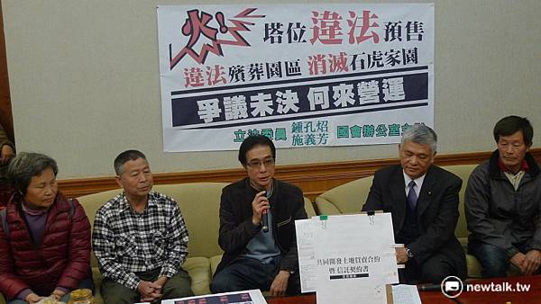 民進黨立委鍾孔炤、施義芳今(17)日召開「違法福祿壽,消滅貓貍喵,爭議未決,何來營運?」記者會。 圖:汪少凡/攝發布 2017.03.17