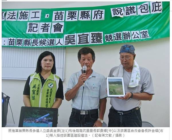民進黨苗栗縣長參選人立委吳宜臻(左1)和後龍龍坑里里長郭貴輝(中)以及該園區自救會會長許金福(右1)等人指控該園區建設違法。(記者陳文敏/攝影)後龍殯葬園區開發 立委籲停工 | 台灣大紀元 https://bit.ly/3XpWQqz