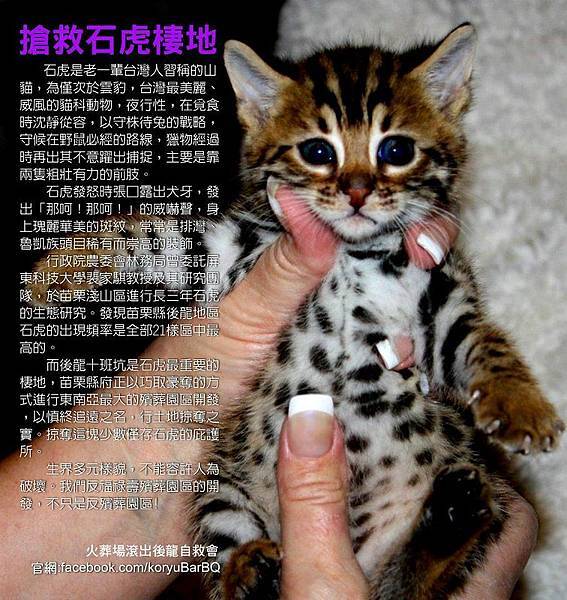 後龍福祿壽殯葬園區的開發,不僅影響當地居民的生活環境,也對一級保育類動物石虎的生存空間有重大的影響