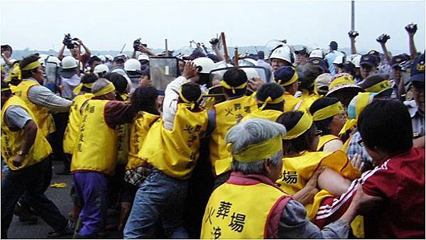 與居民對峙,居民認為苗栗縣不需要殯葬園區。