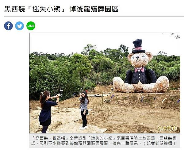 凸顯殯葬園區爭議 「迷失的小熊」亮相 - 地方 - 自由時報電子報 https://bit.ly/3zmyHXD