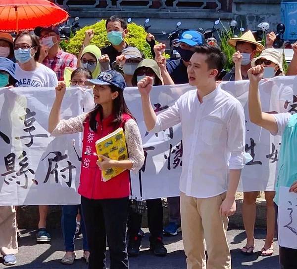 新竹縣議員參選人林碩彥帶領「新竹縣反污染要健康協會」到台北最高行政法院外的抗議活動。