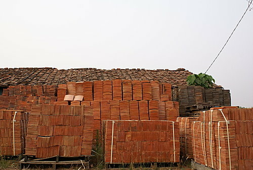 窯主說,三和瓦窯延續古法,原料採用黏性高、砂質少的田土,過去以牛隻踩踏拌勻土水,隨著時代轉變改以機器煉土,再經人工切割、置放陰乾1個月,接著花8天入窯、疊磚與封窯,磚瓦在5公尺高的龜仔窯肚子裡,經過2個月24小時全天候、1千多度慢火不斷灼燒中,幻化出有別於現代磚的色彩與質地,燒製傳統磚要耗費近半年時間,一次最多產出30萬瓦片,過程多仰賴人工技術與匠師的經驗。