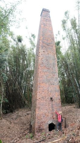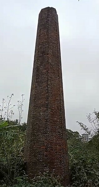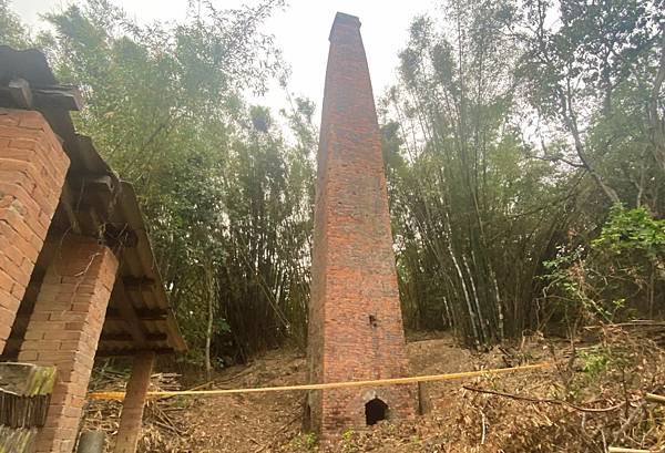 17米高巨物藏山坡!新竹縣芎林發現紅磚方形煙囪