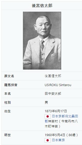 後宮信太郎,日本京都人,父親是位大地主,但是因為從事木材生意失敗,而變賣了擁有的大片土地,他也從同志社大學退學。後來前往朝鮮做雜貨貿易,但因為機會不大,不到一年就束裝回國。