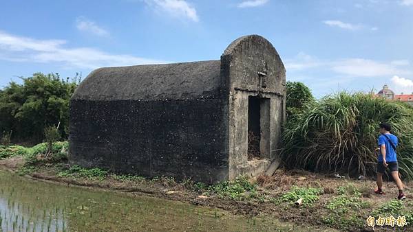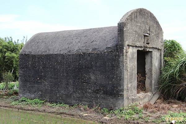碩果僅存的防空壕遺址,遠看讓人會錯以為是客家族群的「祖塔」。(記者黃美珠攝)